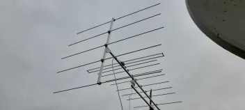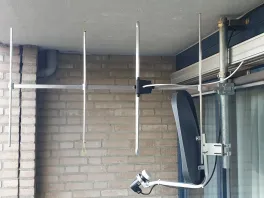This is my little yagi for DAB+, pointing East. A Wittenberg WB305, but I use one director less, and extended one a bit.