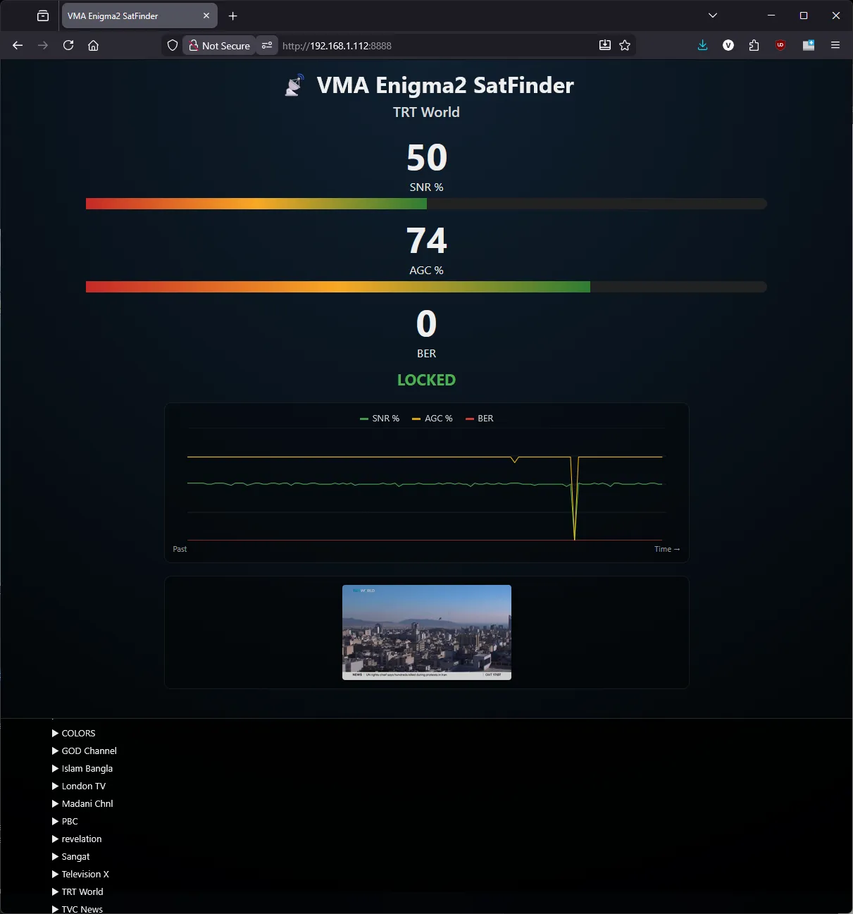 The image (if signal is locked and service is FTA) is updated every second.