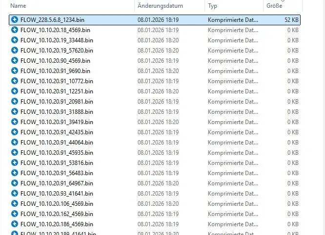 trotz diese Fehlermeldung bekommen ich eine einzige FLOW Datei mit ein paar KB , alle anderen sind mit 0 KB