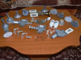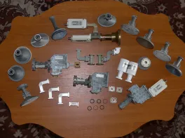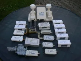 Here is my collection of feeds. Left to right: Viasat from original Prodelin BUC, Viasat polariser, Gilat from BUC with polariser, Gilat polariser, unknown feed, rectangular -circular WG adapter, Scientific Atlanta feed (OK for PF dish)