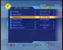 Successful scan of 11630 V 30000 DVB-S2 8PSK 3/5