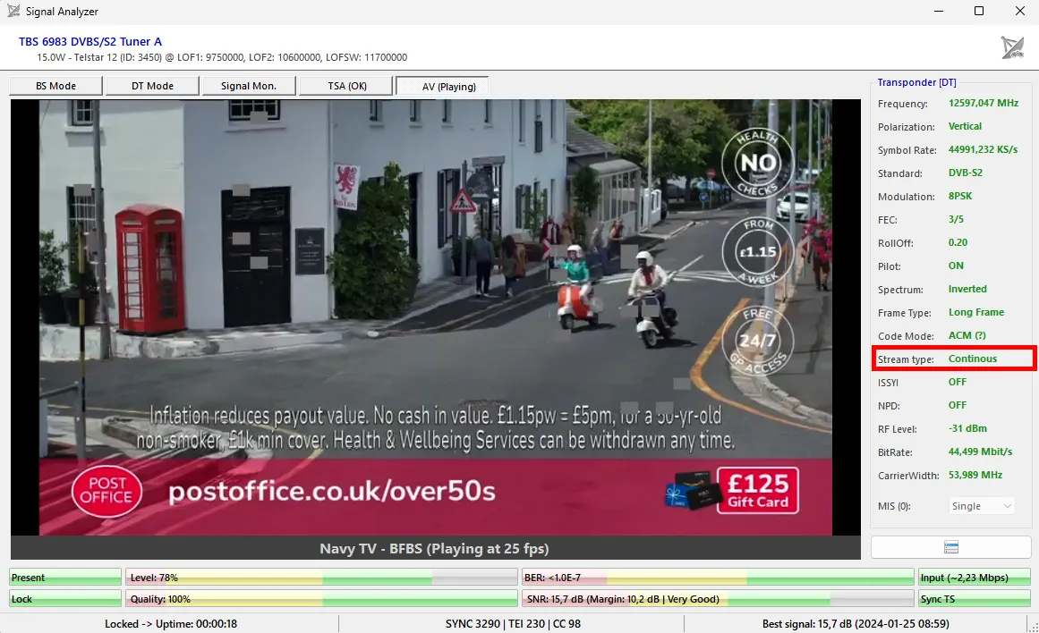 on 12716 V 24900 the same transmission as on 12597 V 45000 ( navy TV en continous)