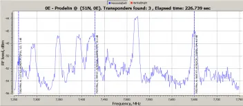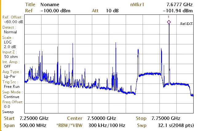 I can't get 7677.75MHz to lock. There a few narrow signals close to it but I don't think they are preventing lock.