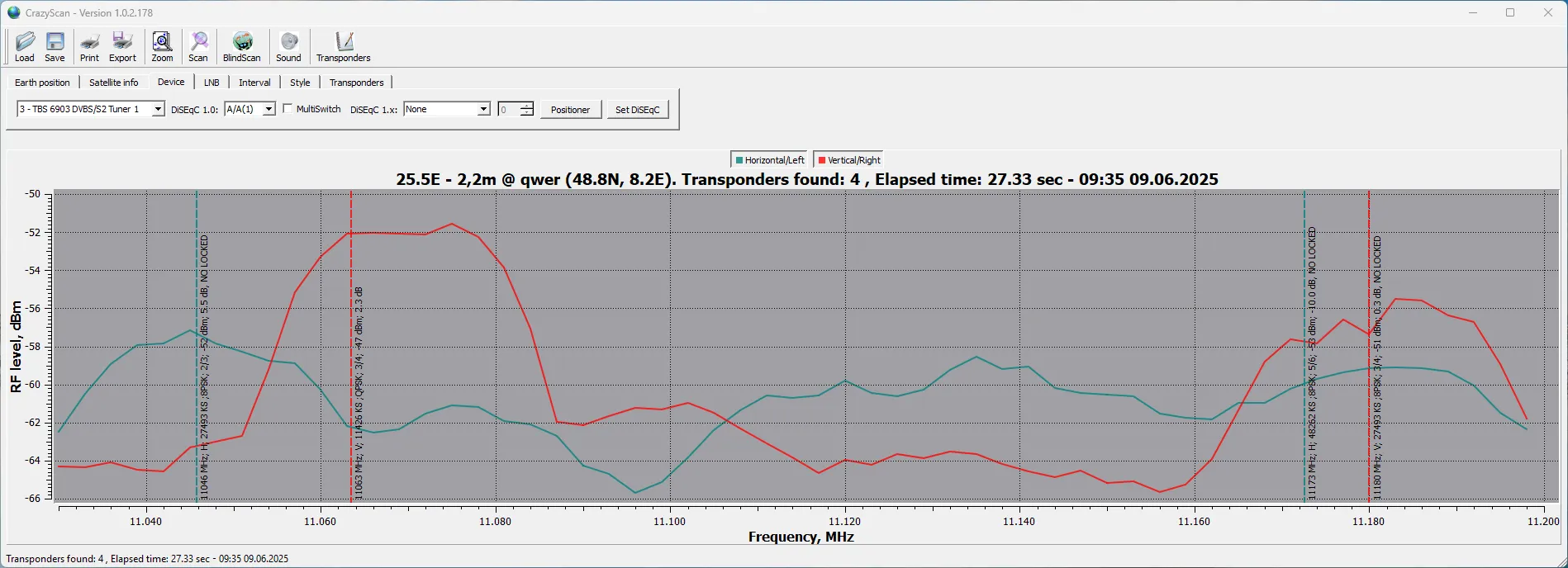 11099 V 4000 DVB-S2 8PSK 3/4 - Close to the lock
