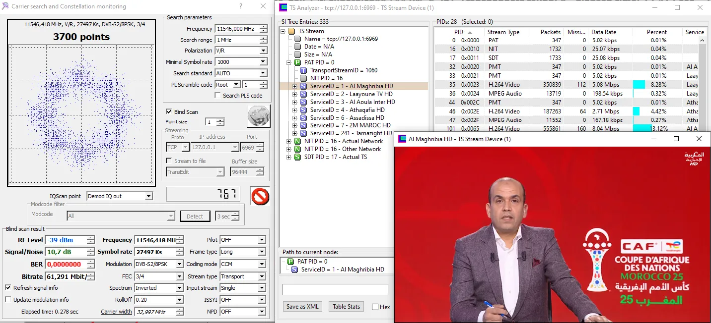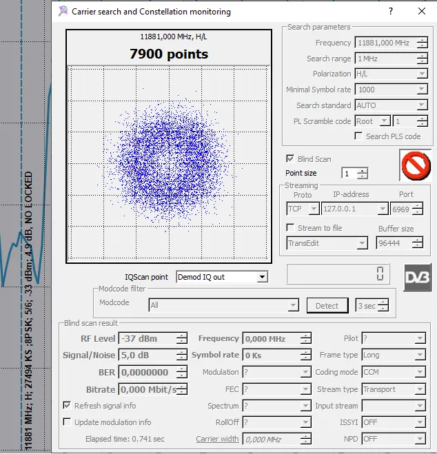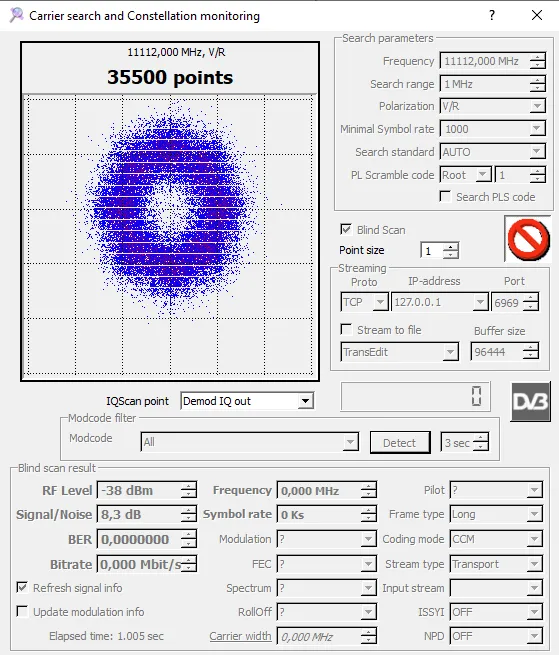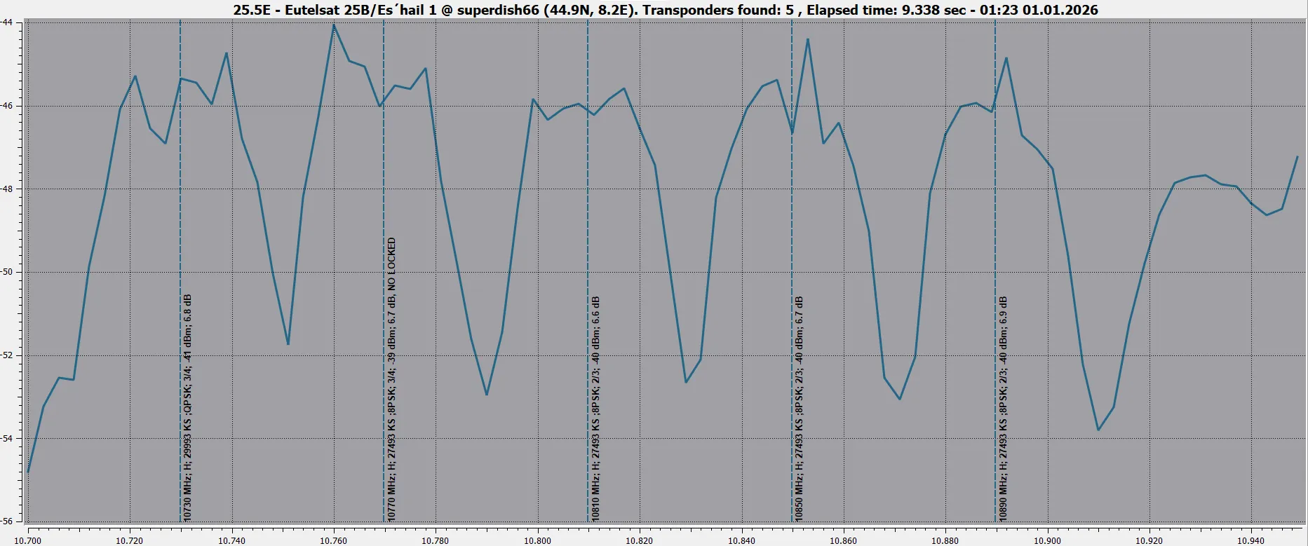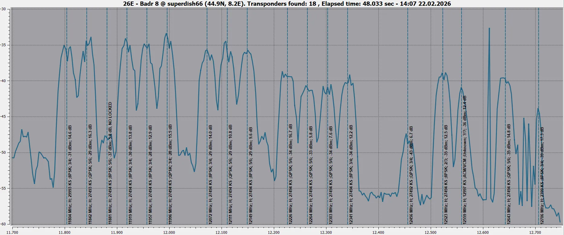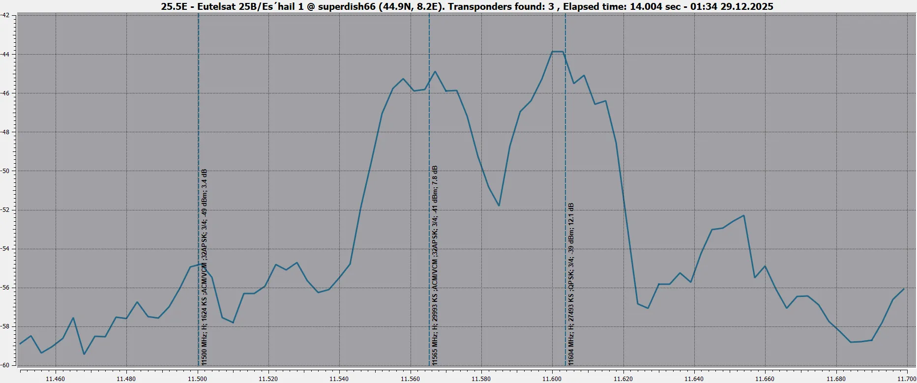 11230 V 27500 DVB-S2 8PSK - Very hard from here. 8.2dB for lock and not stable picture