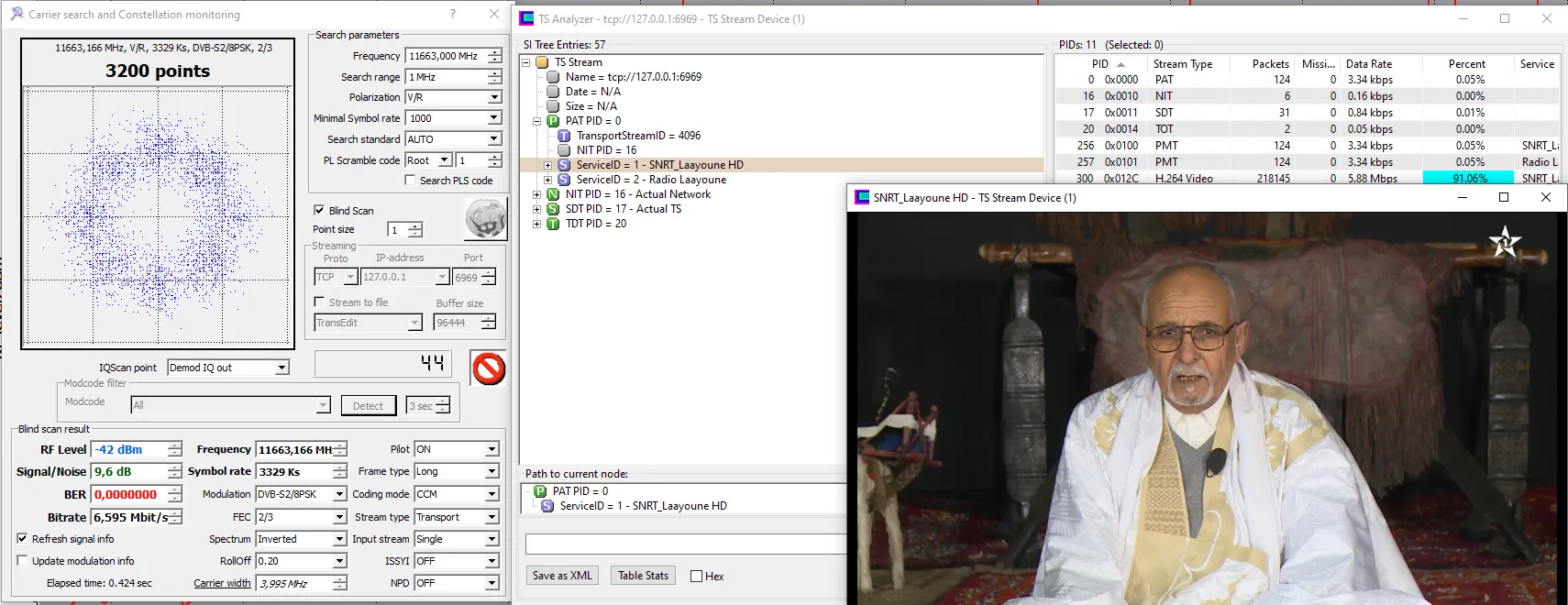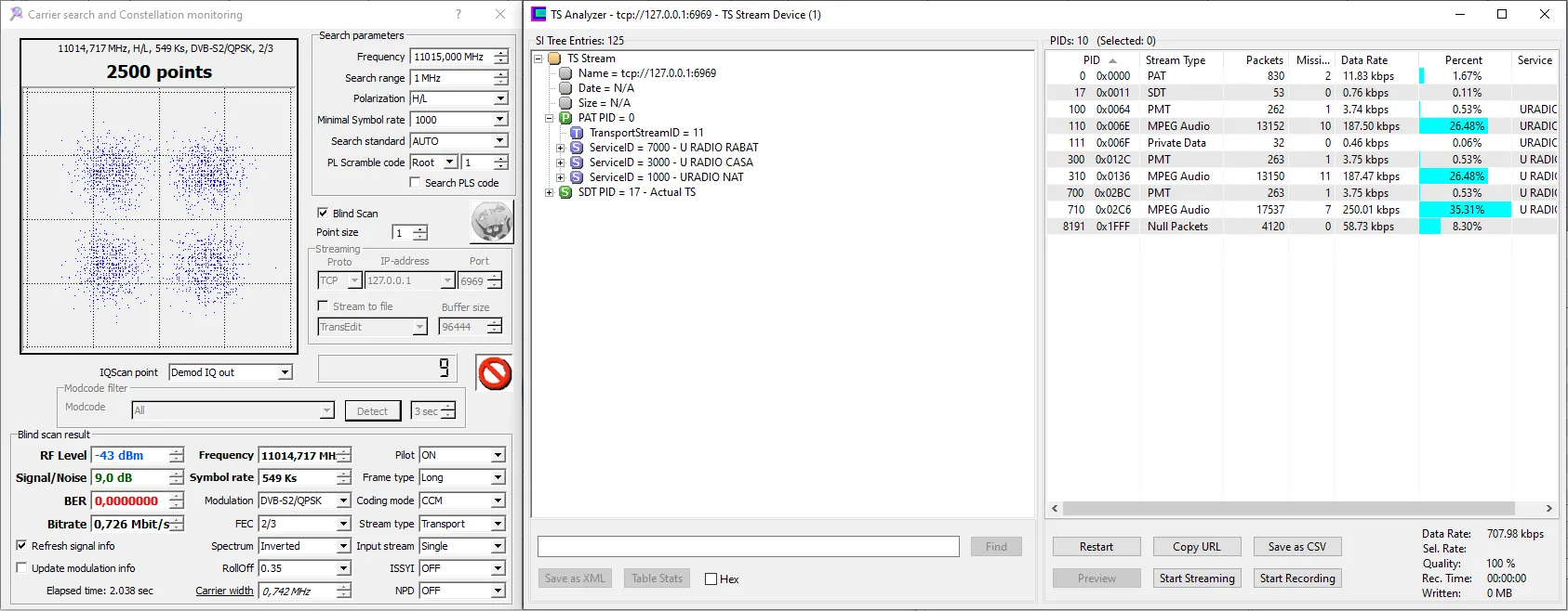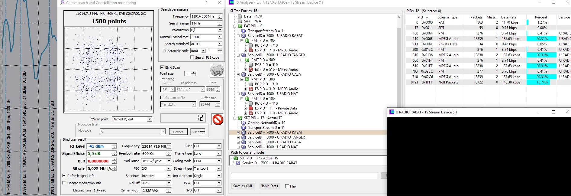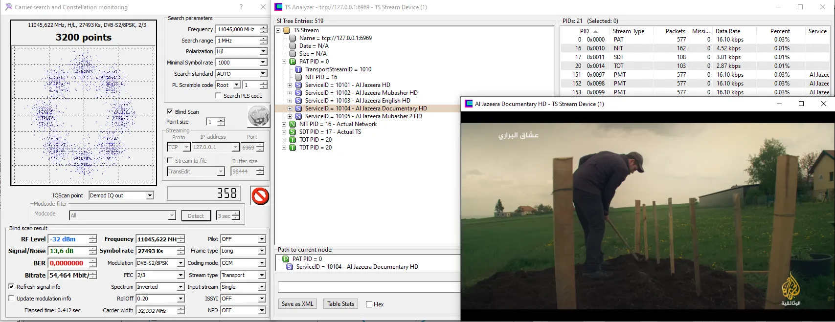 11230 V 27500 DVB-S2 8PSK - Very hard from here. 8.2dB for lock and not stable picture