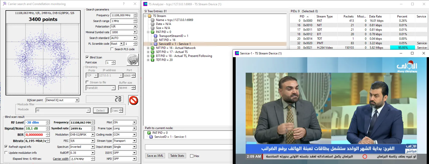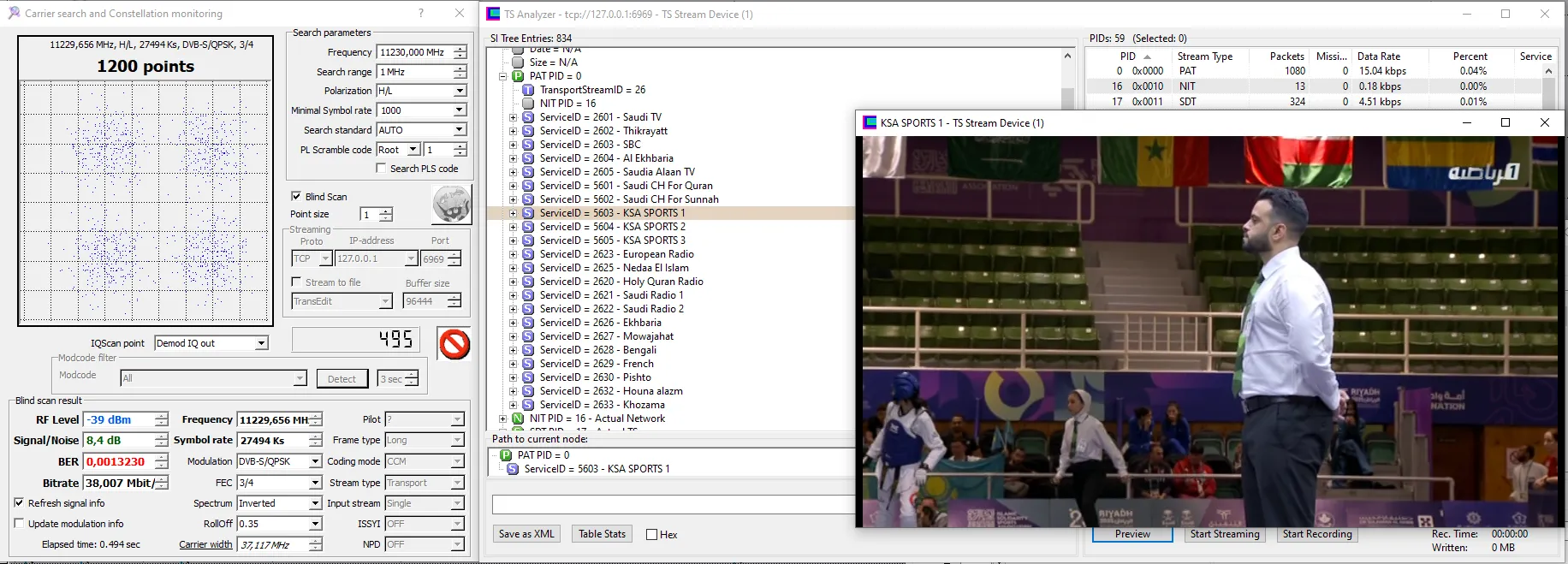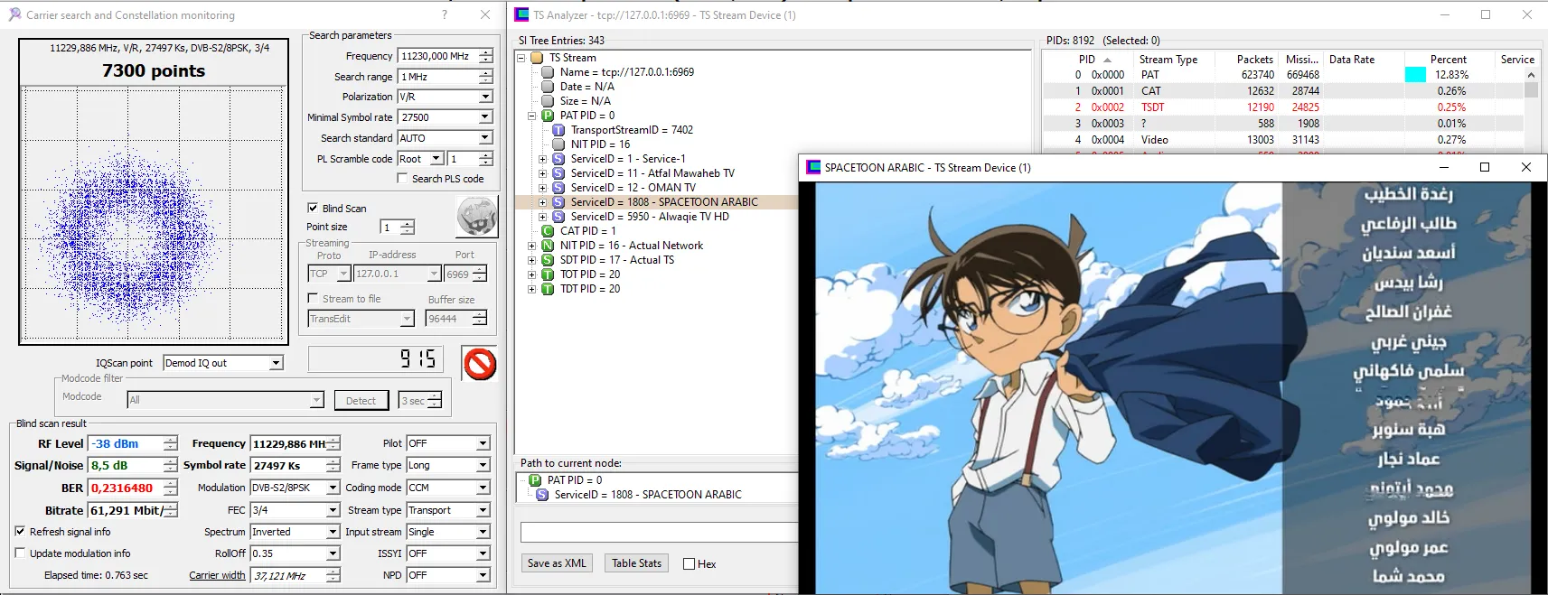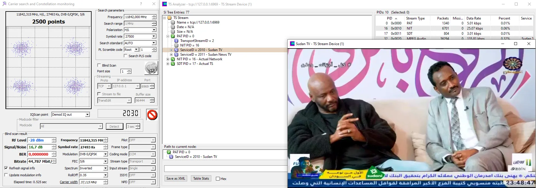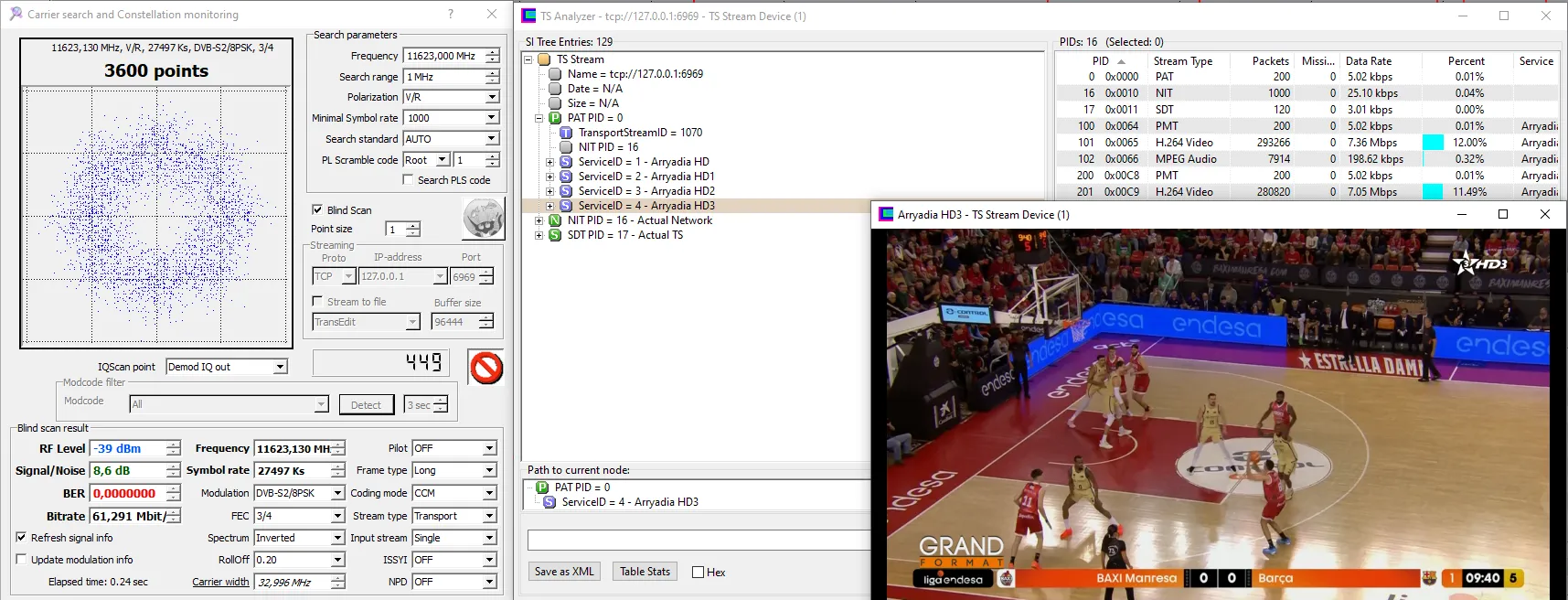 11230 V 27500 DVB-S2 8PSK - Very hard from here. 8.2dB for lock and not stable picture