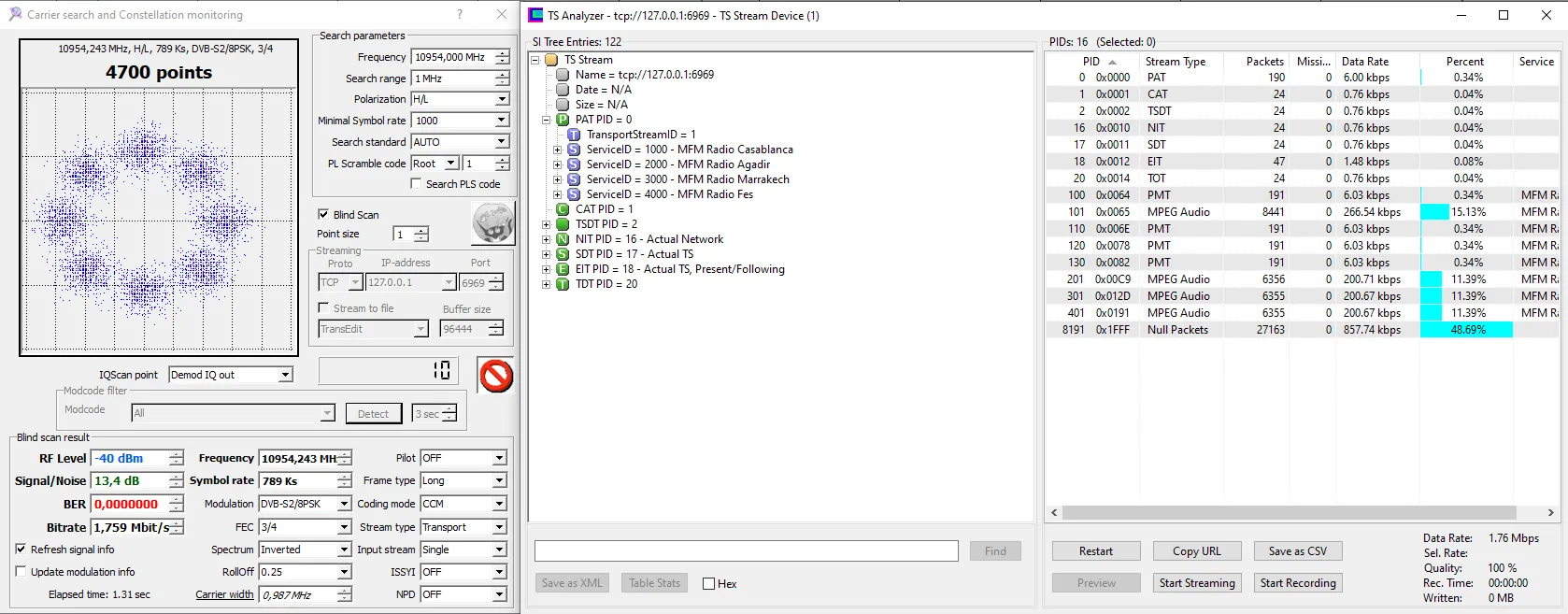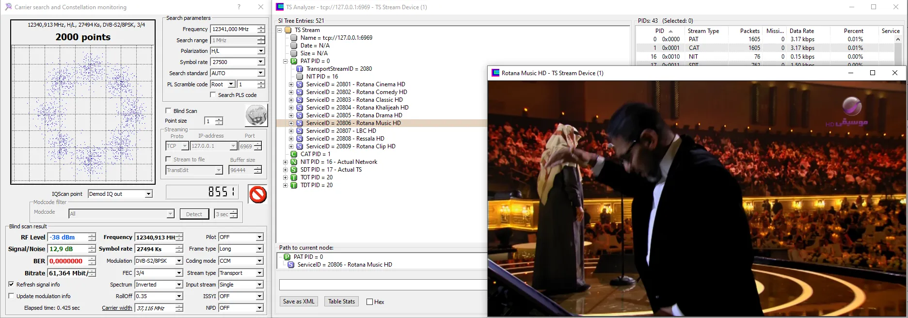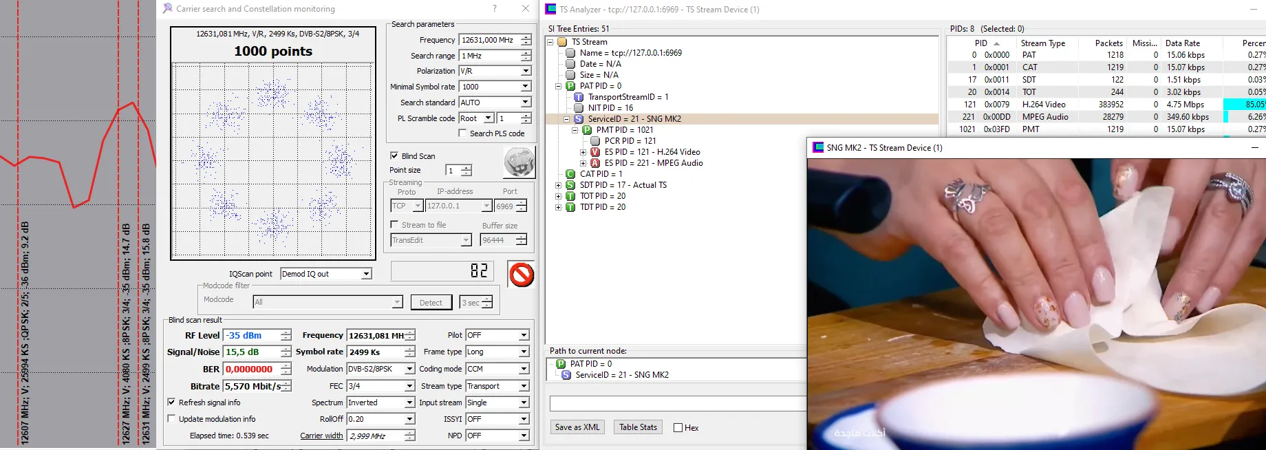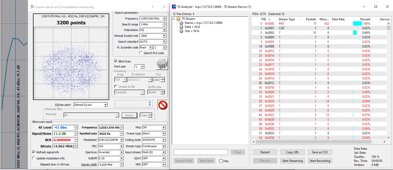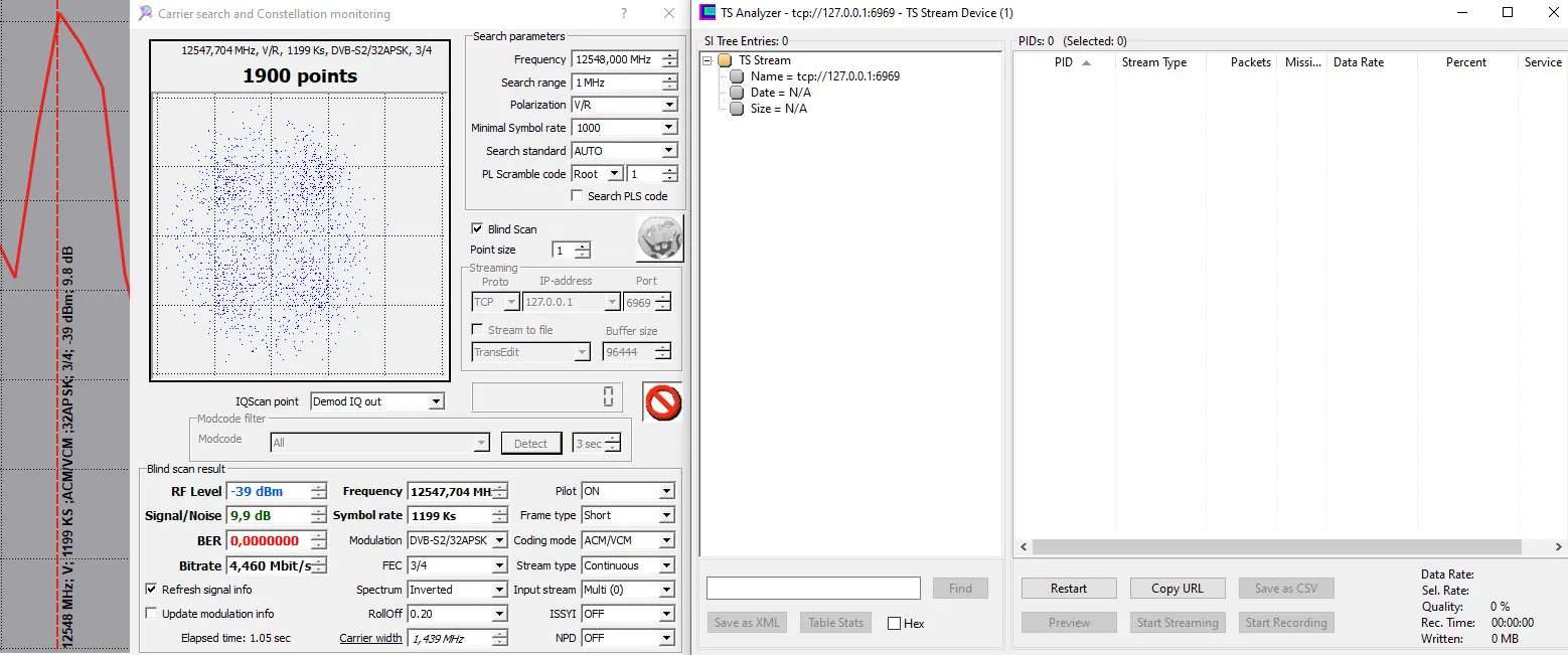 changed Modulation and FEC to 2/3 QPSK, more easy